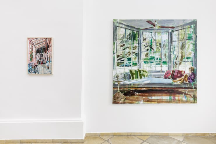 The exhibition When Painting Kicks In shows selected works by eight contemporary artists who are primarily dedicated to painting, including Rade Petrasevic, who works within figurative pseudo-narratives and creates associations with classical modernism and art history with his nudes and still lifes and through his independent style using bold colors, simple shapes, and bold titles, she speaks freely about sexuality, fetishes, bodily transformations, and tensions between the private and the public sphere. Or Laura Limbourg, whose distinctly naive style of painting is characterized by the use of diluted acrylic paints and blurred contours, and whose motifs, which appear provocative, open up serious questions of gender equality, sexual discrimination and women's rights. Working with a sewing machine and a colorful palette, Georg Haberler invites you into his childishly naïve fantasy world with animals, people, houses and more. His surreal compositions tell endless stories to be discovered, flowing from one element to another, however, following the determination of a pictorial logic.